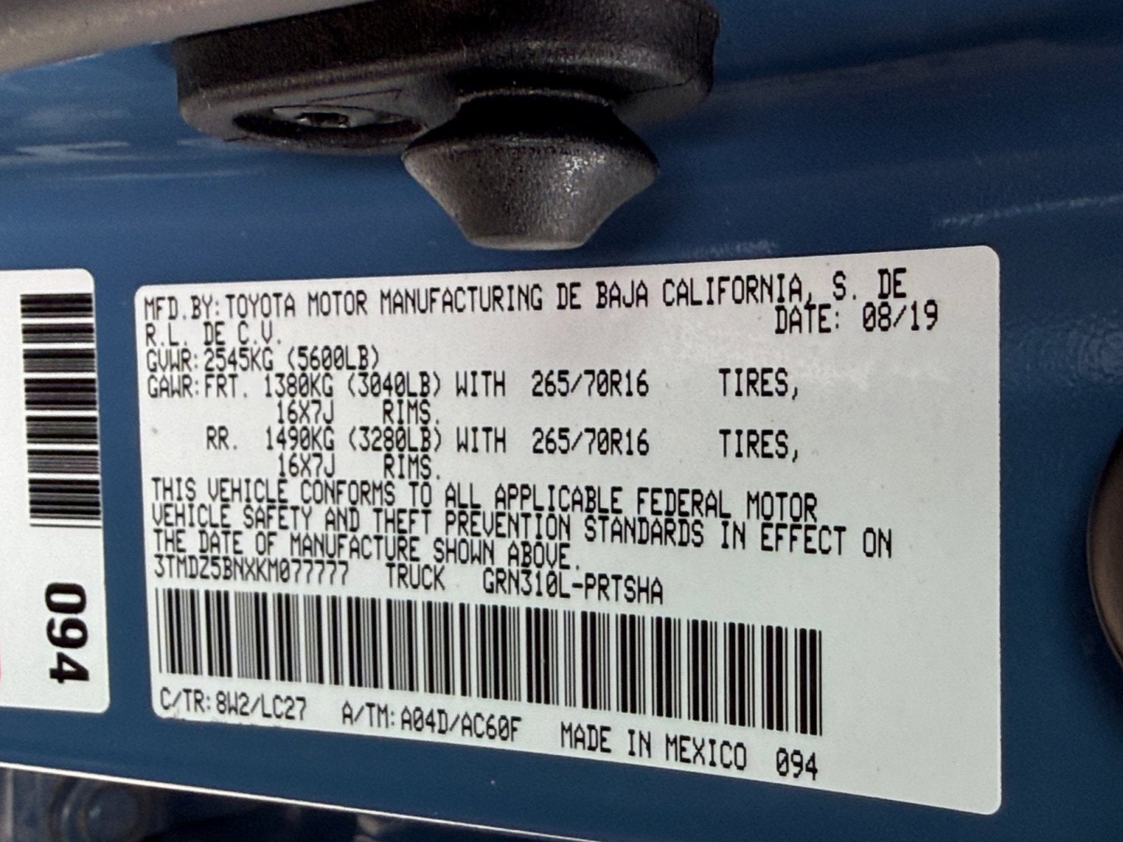 - Vehicle Name: Toyota Tacoma 4WD