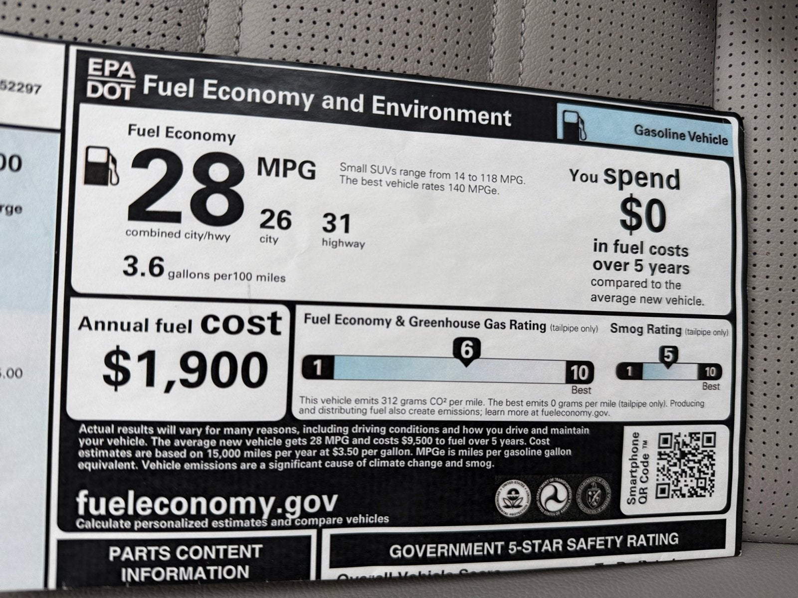 - Fuel Economy Est-Combined (MPG): 28